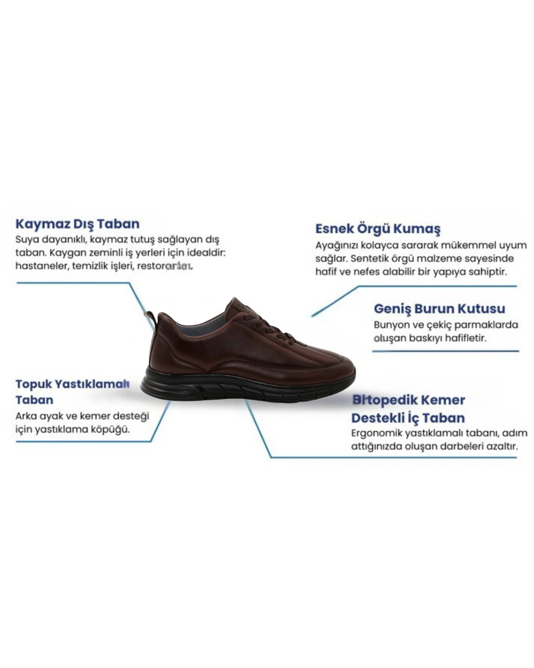 Birçok kişi gün içinde birkaç dakikadan fazla yürüyemiyor, ayakta kaldıkça ayak tabanı, topuk ve diz ağrıları artıyor. Bu ağrılar çoğu zaman yaşlılıktan değil, yanlış ayakkabı seçiminden kaynaklanır. Ortopedik ayakkabılar, ayağa dengeli basmayı sağlayan özel tabanı sayesinde ağrıyı azaltır ve yürümeyi kolaylaştırır. Hakiki deri yapısı ayağı sıkmaz, terletmez ve gün boyu konfor sunar. Çünkü önemli olan daha çok yürümek değil, ağrısız yürüyebilmektir.