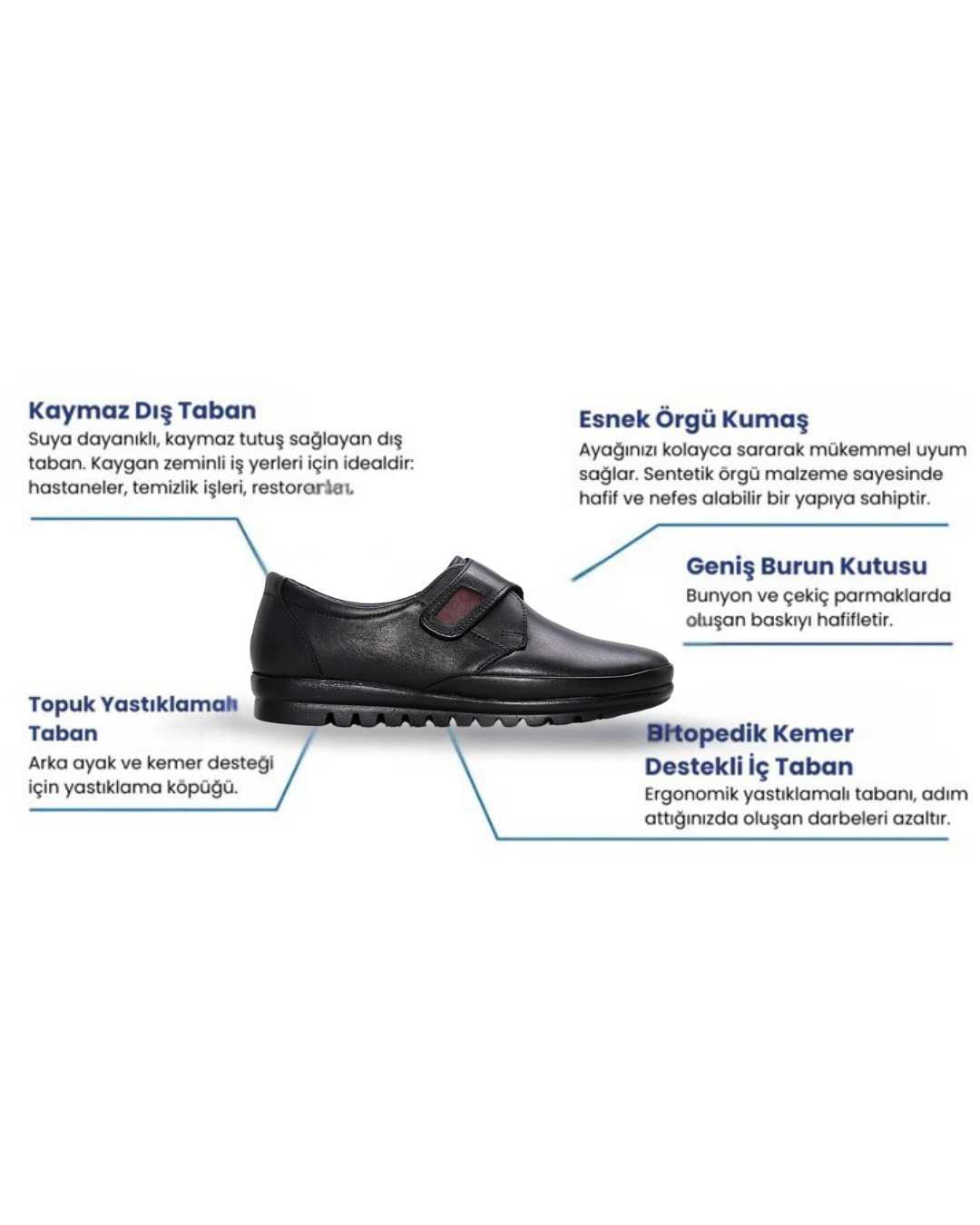 Ortopedik destekli, ayak sağlığına özel tasarlanmış konforlu ve şık ayakkabılardır.