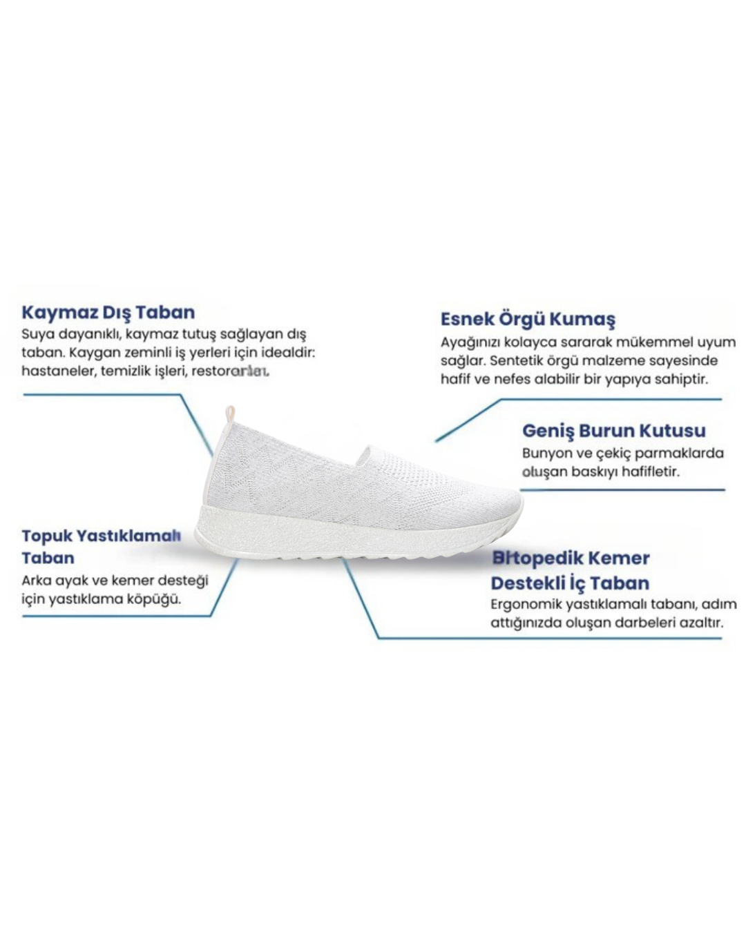Esnek yapısı, hafifliği ve ergonomik taban teknolojisi sayesinde Comfort Wear, gün boyu konforu hissettirirken ayak sağlığınızı da destekler.